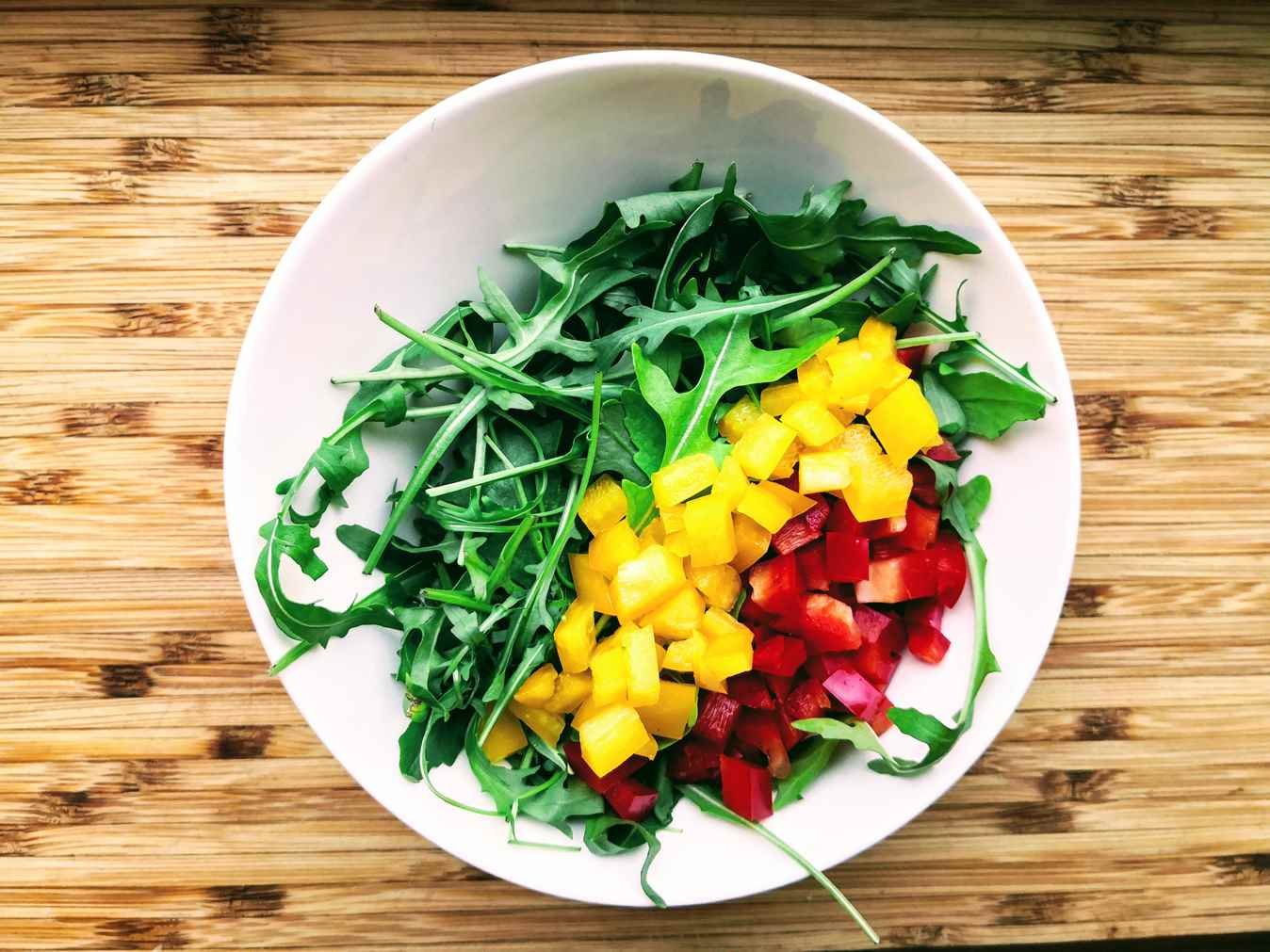 Salotos: raudonoji paprika, gražgarstė, džiovinti pomidorai vakarienei